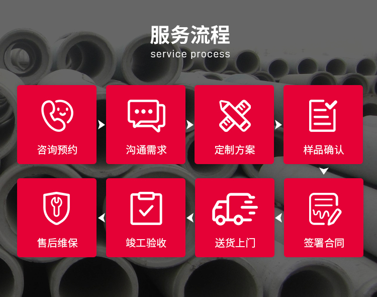 公司生產(chǎn)的各型水泥制品,經(jīng)有關(guān)部門鑒定其質(zhì)量和技術(shù)要求均符合國(guó)家標(biāo)準(zhǔn)。制造工藝先進(jìn),生產(chǎn)設(shè)備、設(shè)施規(guī)范,制造工序完善。產(chǎn)品具有抗?jié)B、抗裂、防腐、堅(jiān)固耐用等特點(diǎn)。